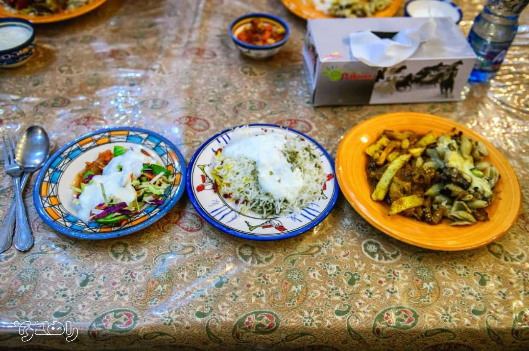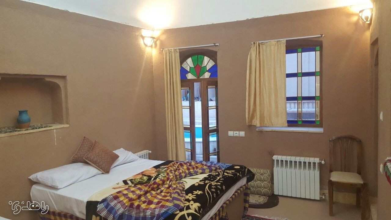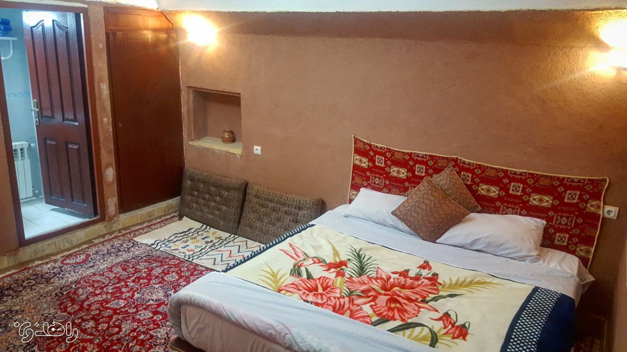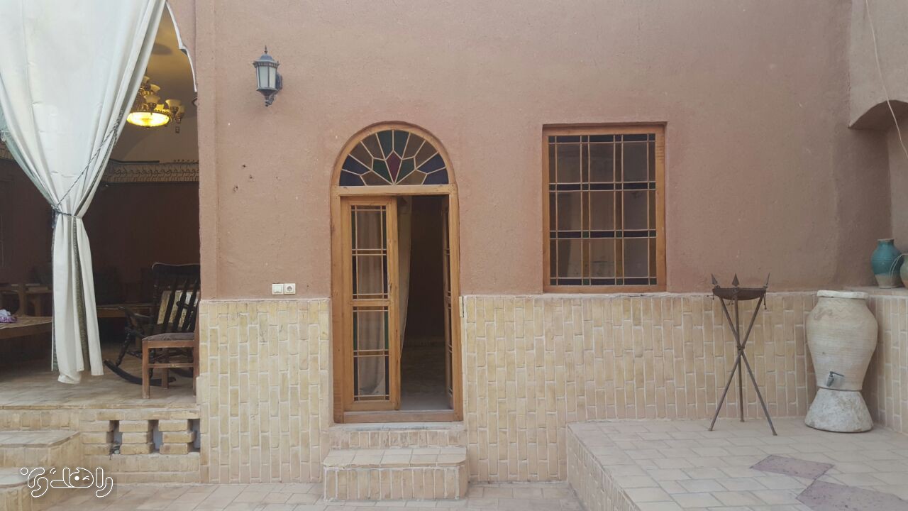 محوطه این اقامتگاه با دیوارهای کاه گلی، پنجره های چوبی و اشیاء سنتی و قدیمی تزئین شده و وجود حوض آب و تخت های چوبی در محوطه، فضایی دلنشین، صمیمی و آرام را برای اقامت چند روزه و دوری از زندگی ماشینی به وجود آورده است.